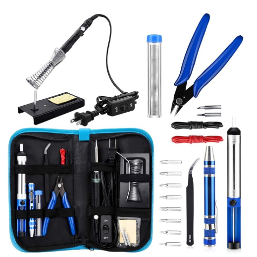 A basic temperature-controlled iron is best for beginners and prevents overheating components.